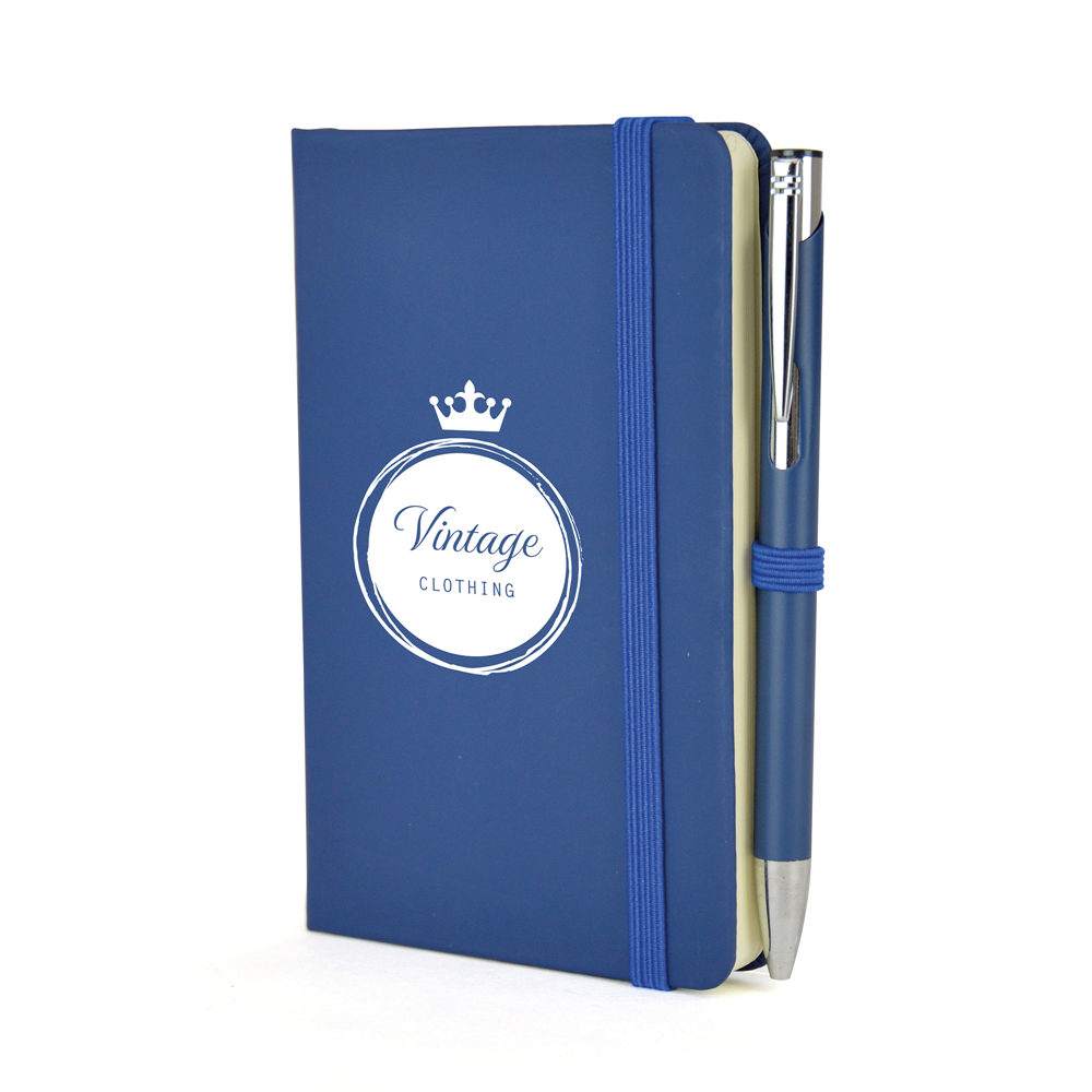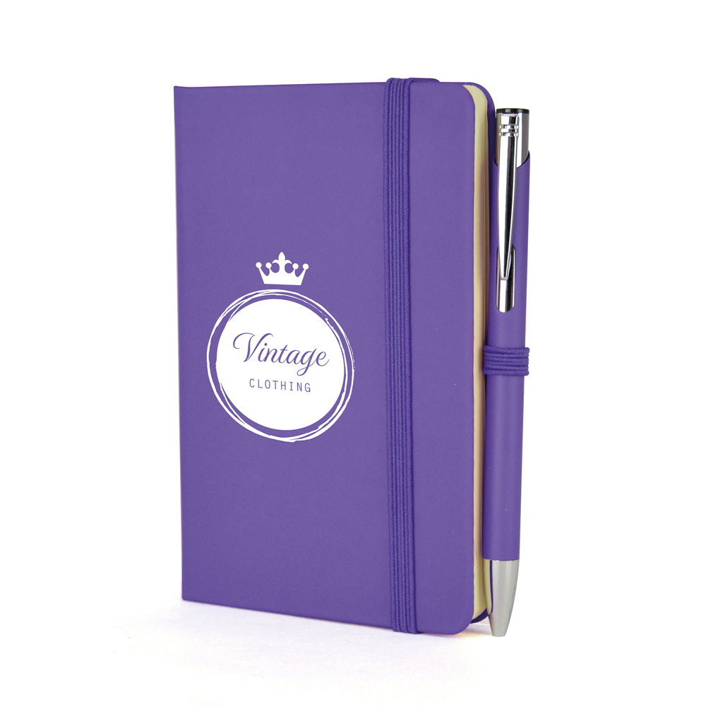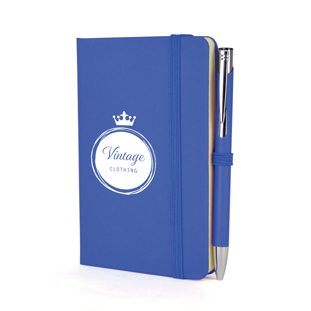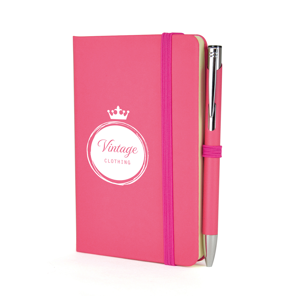 Price includes a one colour print to the note book and engraving to one position on the pen. Individual name available at additional cost. Set up, carriage and VAT are additional.