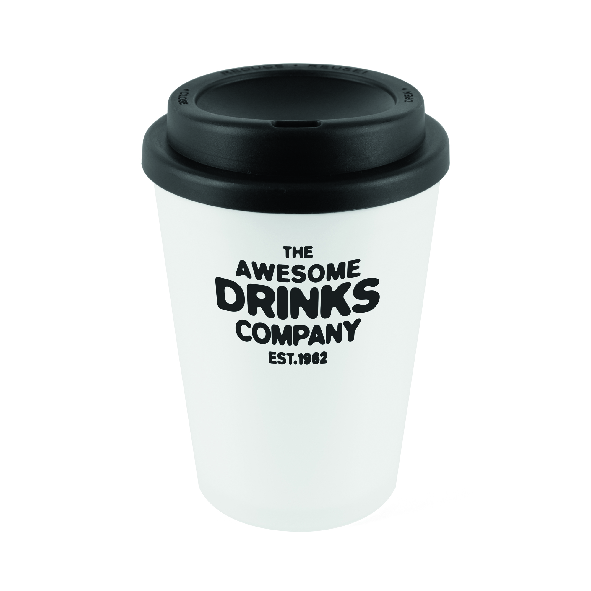 | MG2017BK | 'Haddon' Frosted TRANCLUENT WHITE with BLACK lid 350ml double wall tumbler | 6205 |