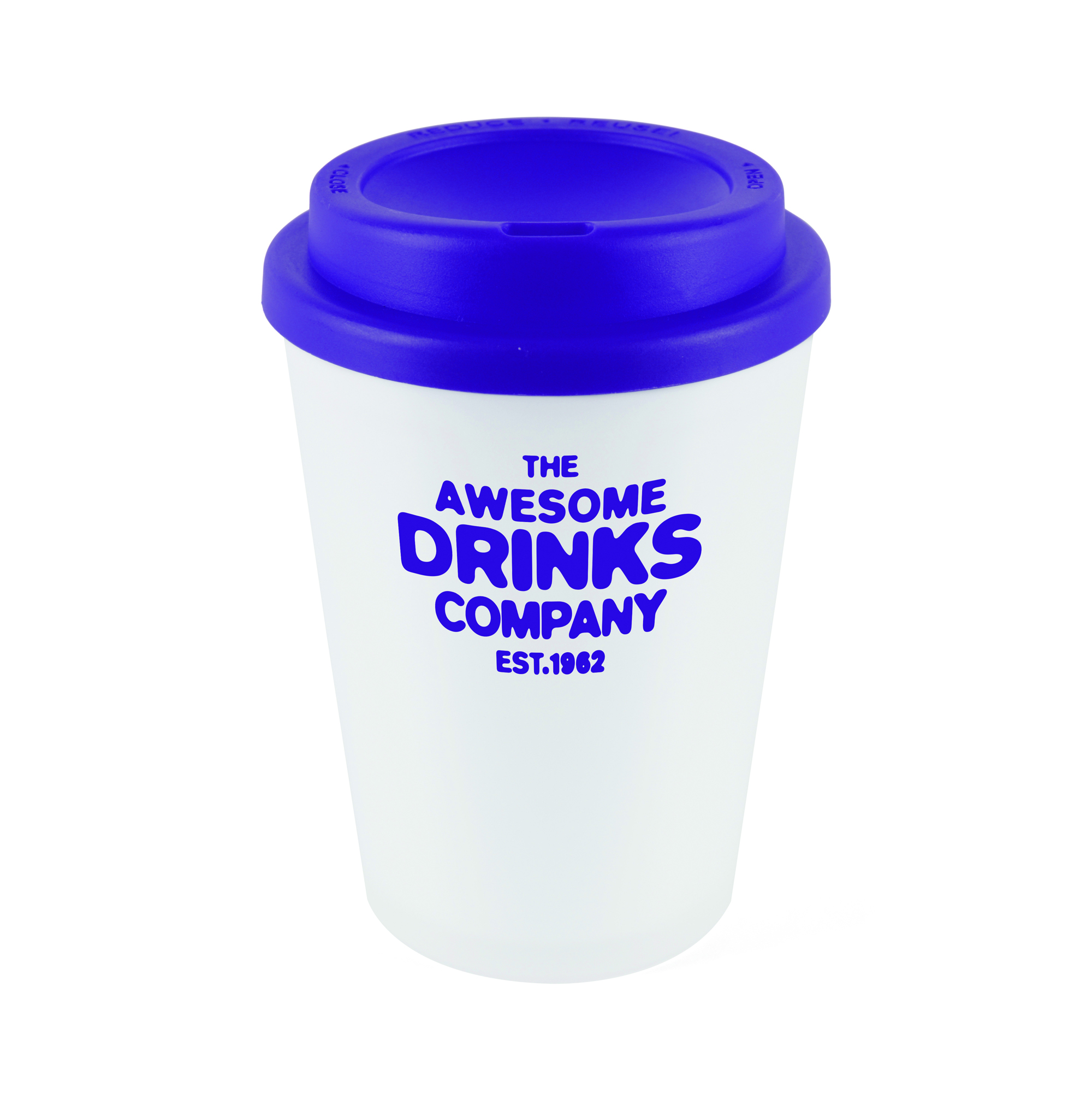 | MG2017BL | 'Haddon' Frosted TRANCLUENT WHITE with BLUE lid 350ml double wall tumbler | 4633 |